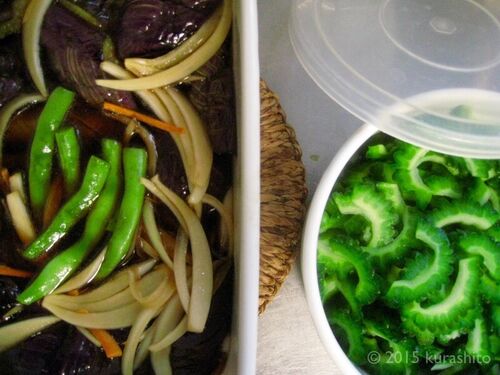 暑い日の夕食の下ごしらえ。ナスとインゲンの南蛮漬け、ゴーヤチャンプルー。 カンカン照りの暑い日よりも、雲が空に蓋をして蒸し焼きされている感じの今日の方が、暑さが一段とこたえる気がします。掃除や洗濯物干しなどしていると、体中がじわっと汗に包ま…